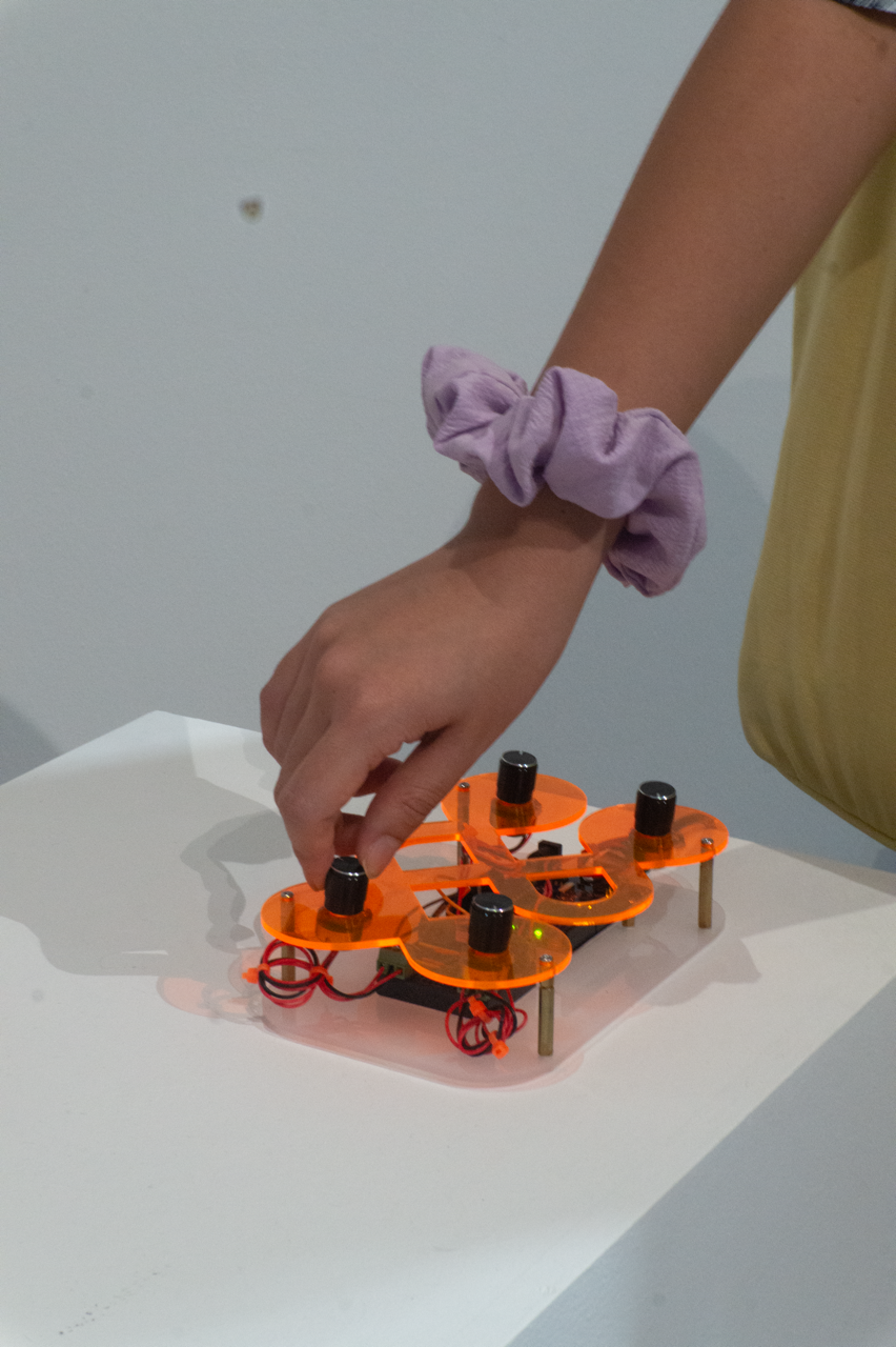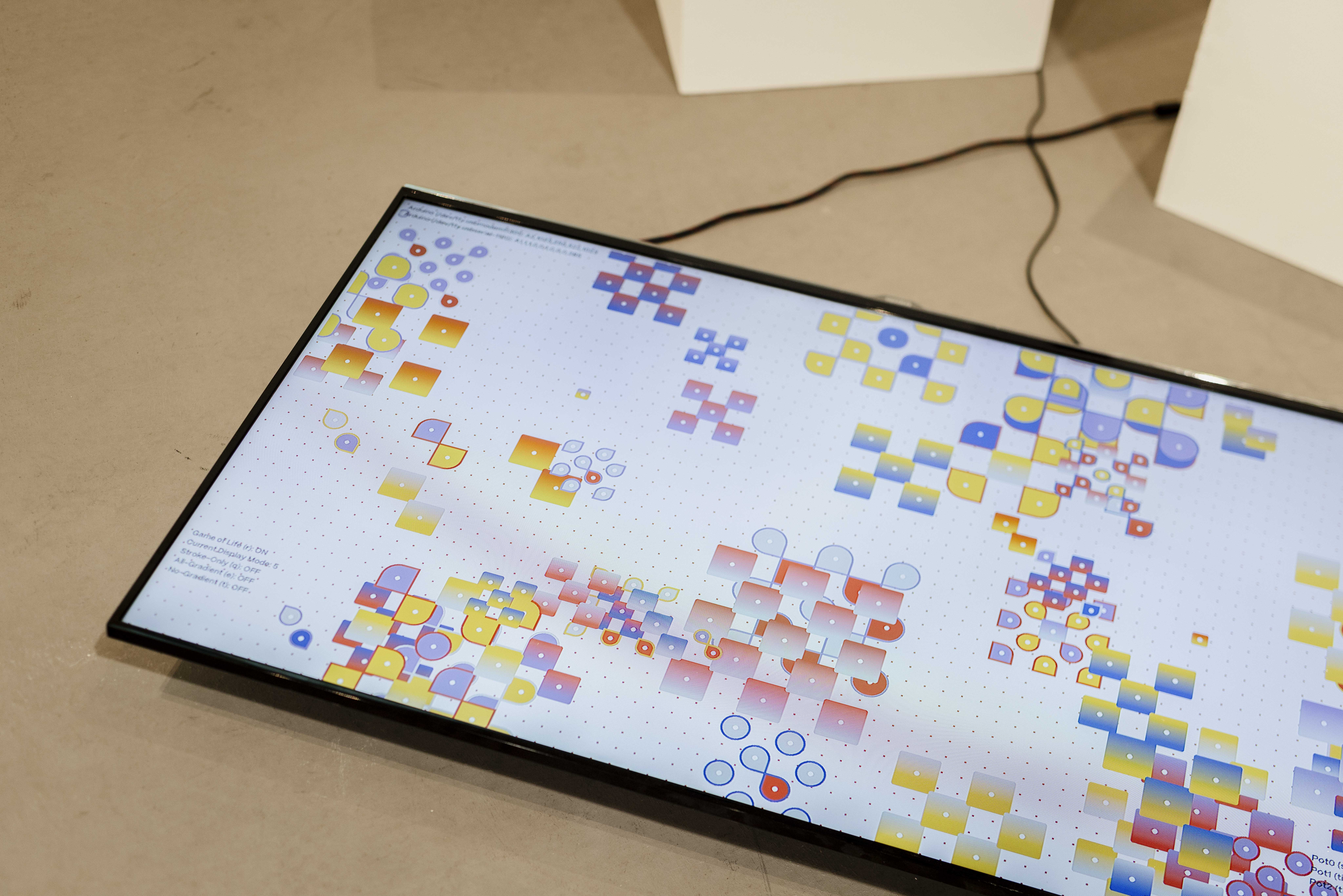 ↓ In this interactive form, kolam becomes a collaborative system. The visuals are generated using custom p5.js scripts, but the patterns aren’t mine alone. In a physical activation (debuted at Still Rendering), visitors could interact with them using physical controllers (rotary knobs, sliders, toggles) that altered tile sizes, speeds, densities, and modes.